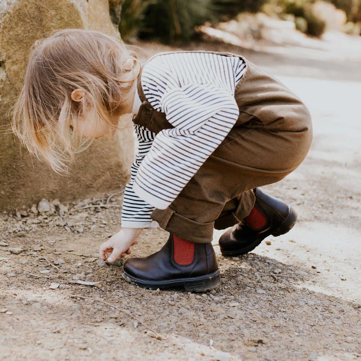 The Blundstone 2590 pairs with every outfit. Boys can wear them with jeans or shorts in summer, while girls can style them with a pretty dress or rugged denim. The crimson accents make the outfit pop!