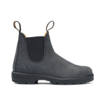 The Blundstone 587 is made of rustic black/grey nubuck leather. The rustic black Blundstone 587 has a fearless look. the leather has a robust look. A beautiful colour rustic black/grey that is unique in the Classics range. The luxury insoles feature extra poron. The Classic models are also all lined. In addition, the Classics are a bit wider on the instep than the Orginals. This makes the chelsea boots ideal for people with a high instep, which also makes them suitable for people with a slightly wider foot.The Blundstone 587 is a nubuck black/grey Blundstone. The chelsea boots have black elastic on both sides. The leather is of high quality. These sturdy chelsea boots are easy to put on because of the pull loops. No matter how strong you are, the pulltags are indestructible. Because the chelsea boots are lace-free, you naturally slip them on quickly. The boots are often worn during a walk, but also when going to a festival or shopping. The nubuck leather of the Blundstone 587 gives a vintage look. You can also combine the chelsea boots with jeans and thick socks in winter, but they also look great under a skirt, shorts or dress.